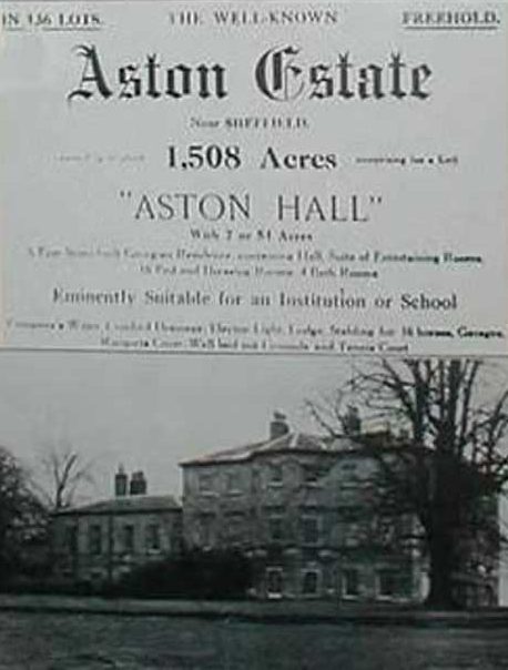 1928 – The estate is broken up and sold in lots. Aston Hall is bought by Sir Ronald Matthews, J.P. Sale advertisements (some still on display in the Blue Bell pub) describe the property as “eminently suitable for an Institution or School.”